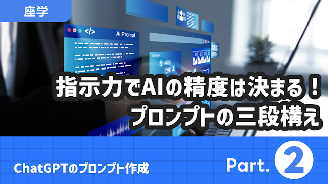 本動画では、ChatGPTの回答精度を高めるプロンプト(指示文)作成のコツを学びます。「指示」「条件」「応用」の3要素を軸に、役割設定や背景情報の提示、出力形式の指定など、意図通りの結果を得るための具体的な指示出しの方法を解説します。 ※使用している生成AI及び解説は、2025年1月時点のAIモデルに基づいています。