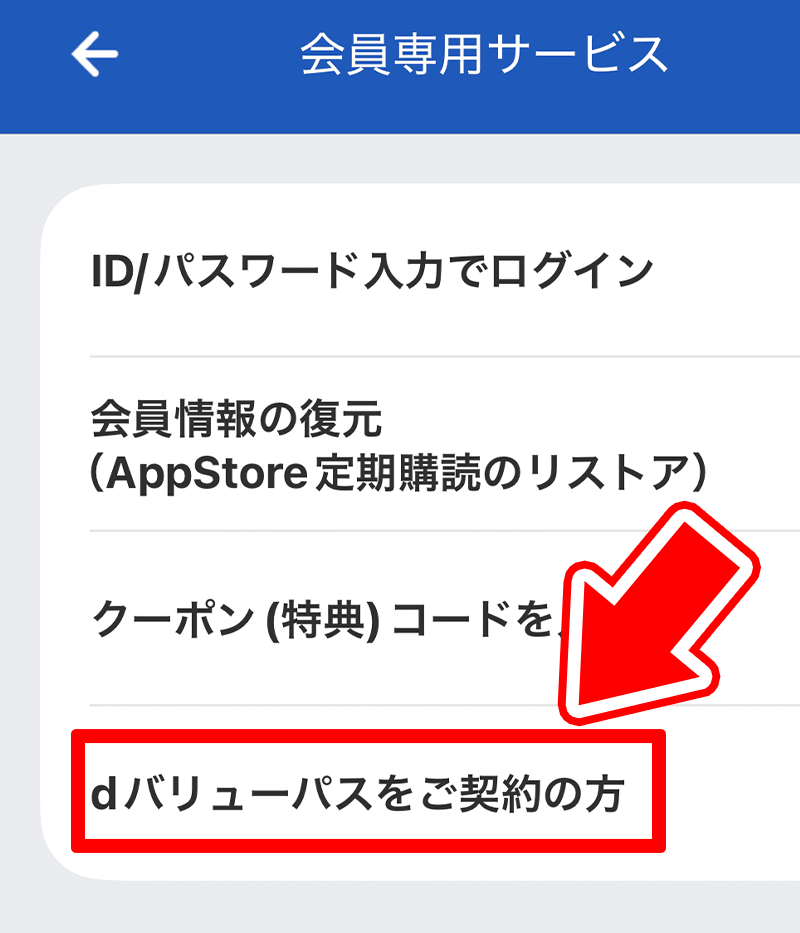 「dバリューパスご契約の方」を選択。 -