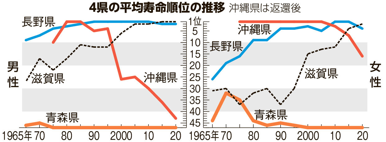 平均寿命、躍進の滋賀、転落の沖縄、短命の青森が集まり分かったこと