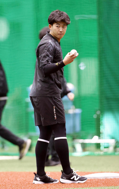 右脚の肉離れで17日の練習途中から別メニューのドラフト1位・立石正広内野手(22=創価大)は室内で別メニュー練習を継続…