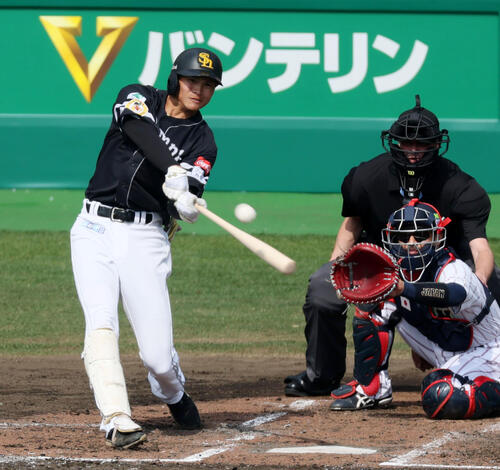 【ソフトバンク】笹川吉康が侍ジャパン曽谷から右翼ポール際へソロ「熱くなる部分がいい方向に」