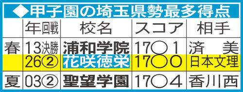 【センバツ】甲子園の埼玉県勢最多得点/一覧