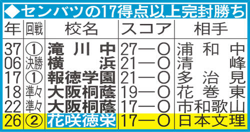 【センバツ】センバツの17得点以上完封勝ち/一覧