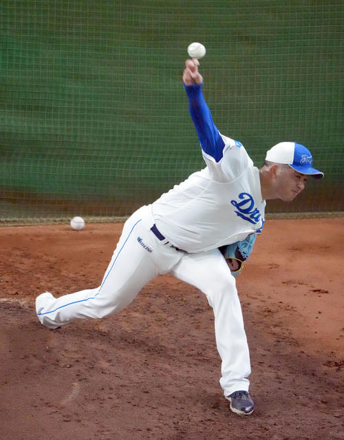 【中日】松山晋也が侍J韓国戦に向け使用球で初ブルペン。22球投げフォークが「めちゃ落ちる」