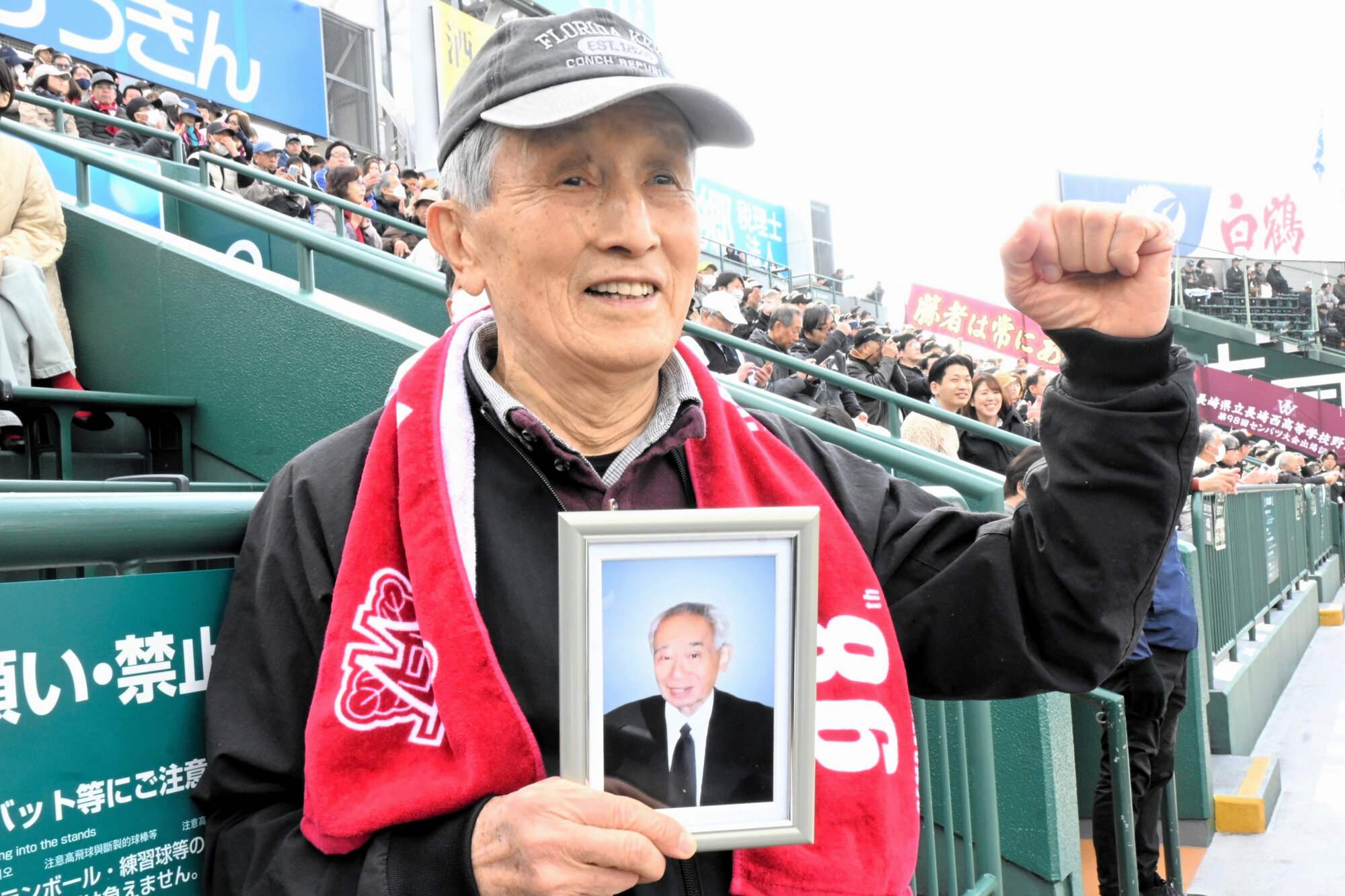 75年ぶりの甲子園 長崎西の86歳卒業生が先輩の遺影を持って声援