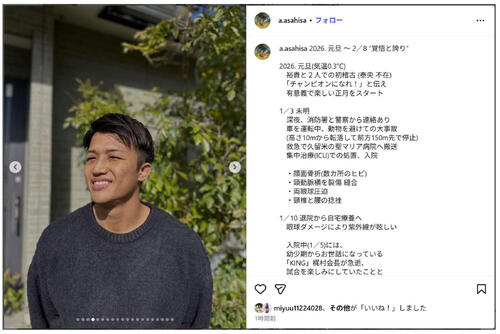 【K-1】8日の王座決定戦で里見柚己に敗れた朝久裕貴が正月に車で大けがに見舞われていた