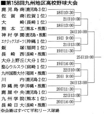 開幕戦は鹿児島商VS佐賀商 九州地区高校野球大会、18日開幕