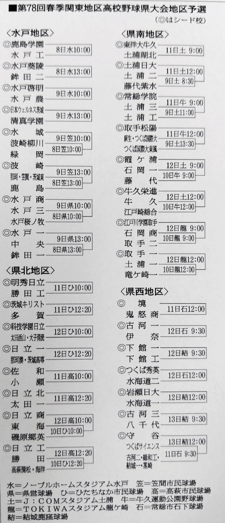 8日から春の高校野球茨城県大会地区予選 対戦組み合わせ決定