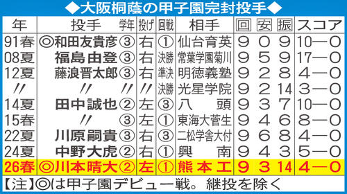 【センバツ】大阪桐蔭の甲子園完封投手/一覧