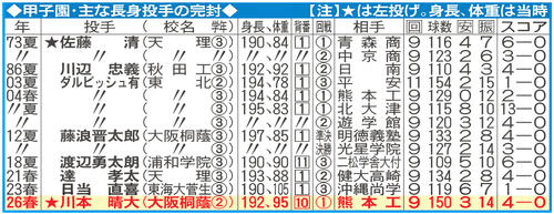 【センバツ】甲子園・主な長身投手の完封/一覧