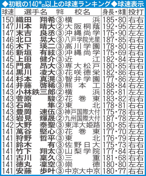 【センバツ】初戦の140キロ以上の球速ランキング/一覧