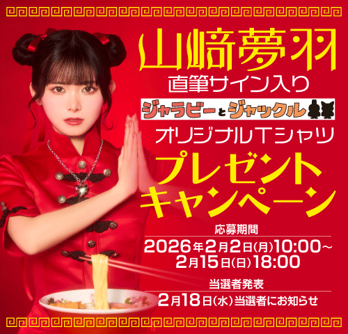 対象期間中にご応募いただいた方の中から、抽選で5名様に山﨑夢羽サイン入り「ジャラビーとジャックル オリジナルTシャツ」をプレゼント!